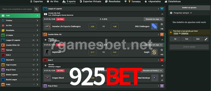 O 925Bet oferece uma grande seleção de opções de apostas em e-sports com probabilidades competitivas